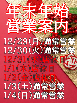 誠に勝手ながら、年末年始の営業は下記の通りとさせていただきます。