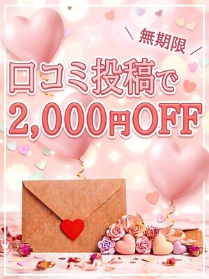 デリヘルタウンorヘブンネットの 口コミを投稿して お得にお遊びいただけます 次回のご利用時に 2,000円引き! 【他店では珍しい総額からの2,000円引き!他イベントとも併用可能です】 ※1回のご利用でクーポン1枚のご利用が可能です。 ※ご利用の際に必ず『割引コード』をお伝え下さい♪ ※サイト反映に数日かかる場合もございます。 ※各割引、キャンペーンは予告なく変更、終了する場合がございます。予めご了承ください。